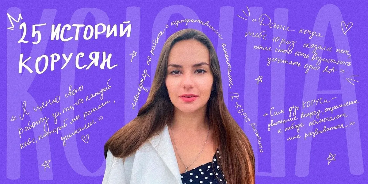 «Работа в КОРУСе — это прекрасная возможность развиваться и меняться вместе с компанией и клиентами. Здесь истории успеха сотрудников уникальные, и каждый найдет то, что ему интересно».