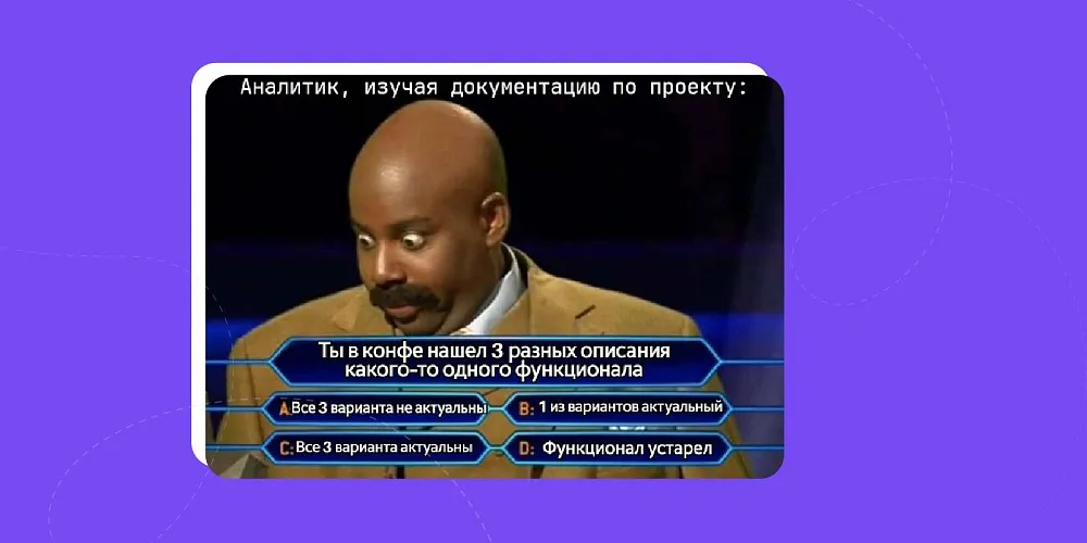 Без аналитика, в принципе, существовать можно, как и выйти без зонта в ливень — ничего глобально страшного не случится, но результат, скорее всего, будет не тот, который ожидался. Возвращаясь к посылу шуточного ролика, скажу, что аналитик — важный переводчик с языка «хочу космический корабль» на язык «мы делаем не космический корабль, а батут, но с красивой кнопкой… нам этого хватит» с пониманием того, зачем эта кнопка нужна, и насколько высоко должен подбрасывать батут.