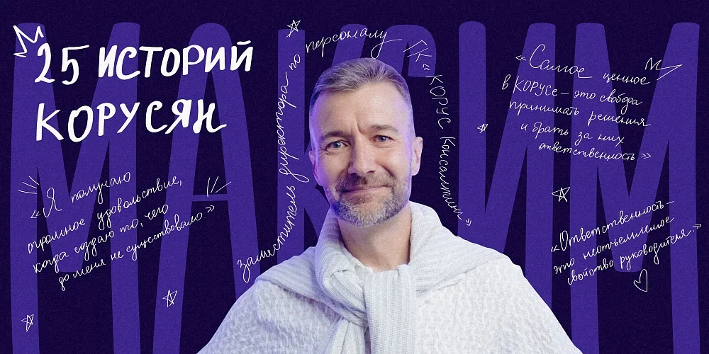 О том, чем запомнились первые дни в компании, как строился профессиональный путь в КОРУСе и чем компания особенно ценна, Максим рассказал в интервью.