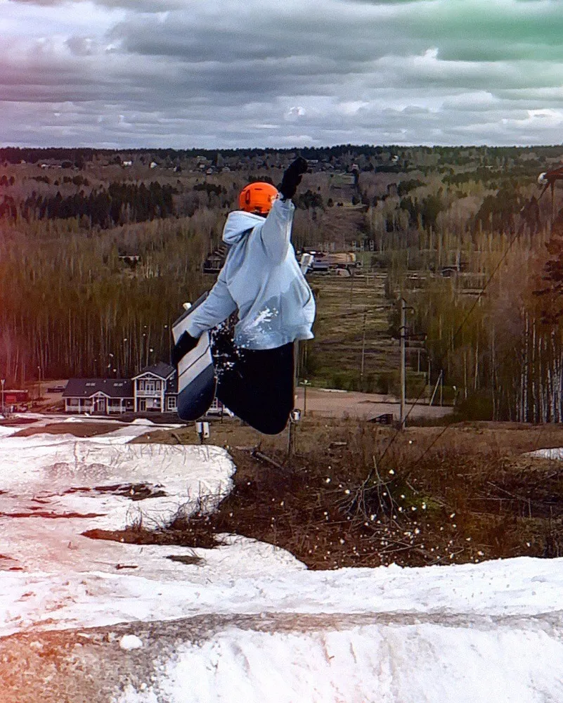 Мое экстремальное хобби — фристайл. Все началось довольно случайно. Однажды на горнолыжном курорте мы увидели человека, который сидел на стуле у трамплина и что-то громко кричал райдерам, выполнявшим прыжки. Оказалось, что это тренер. Он предложил нам попробовать — так все и началось.